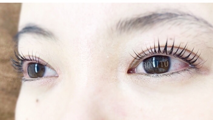 こちらのお写真のお客様はマスカラを塗っているようにみえますが、美容液のみのスッピンのお目元になります。根本からしっかりあげてパッチリ感を出しています。根元からしっかりあげていますが、パッチリ目に見せる為には、「マツ育」もとても大切です。普段からまつ毛の美容液をしっかり塗る事で、しっかりした土台のまつ毛になります。BONITOでは2種類のまつ毛美容液をご用意しております。