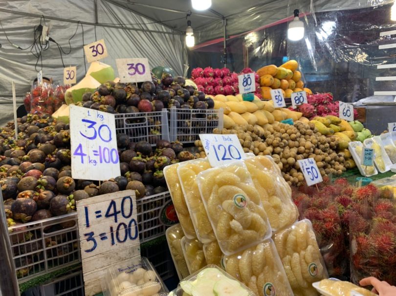 新鮮なフルーツも100円〜売っていて食べ歩きも楽しいです。