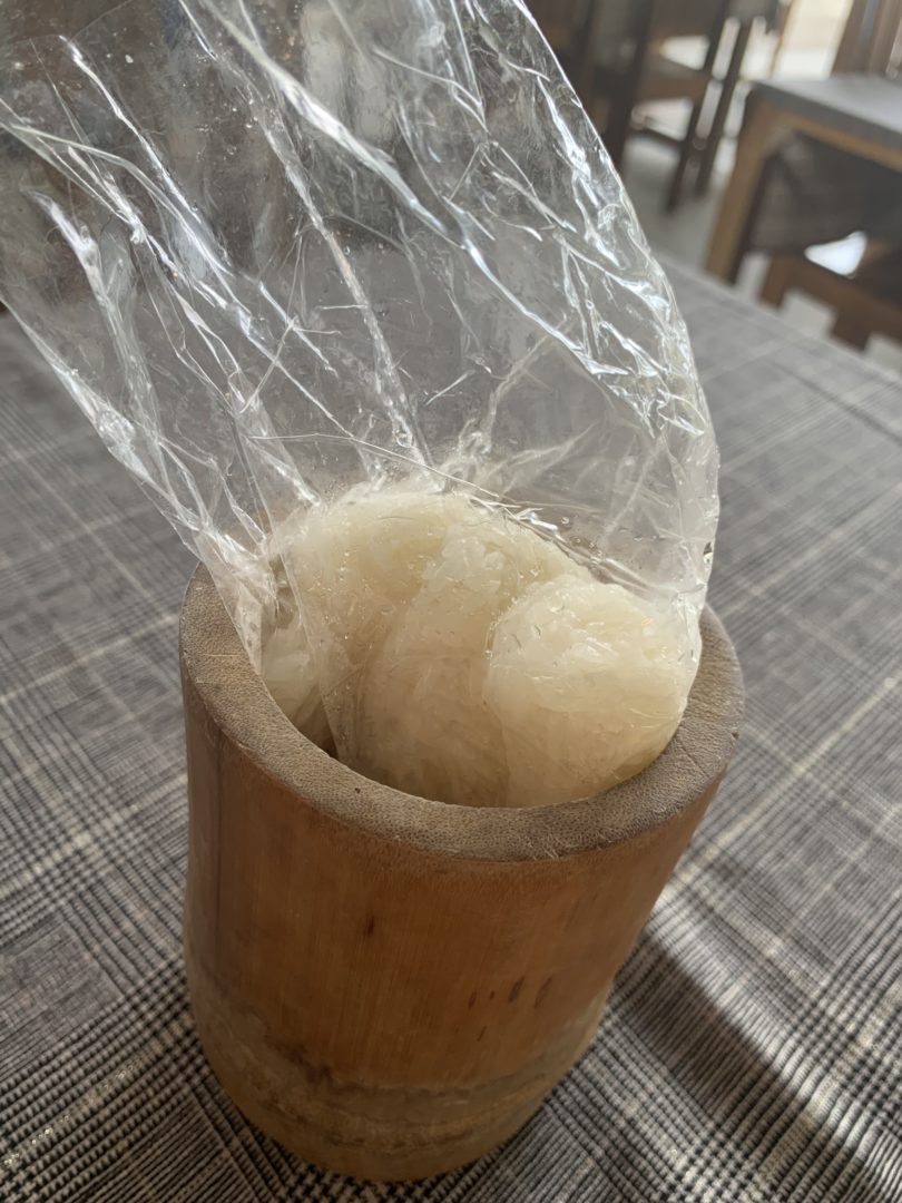 こちらはスティッキーライスです。もち米なんですが、タイ米で作るもち米が大好きで毎回絶対に頼みます。グリーンカレーにはジャスミンライスが合うのに、と言われてしまいましたが、折角の旅行なので好きなものだけを好きなだけ。笑