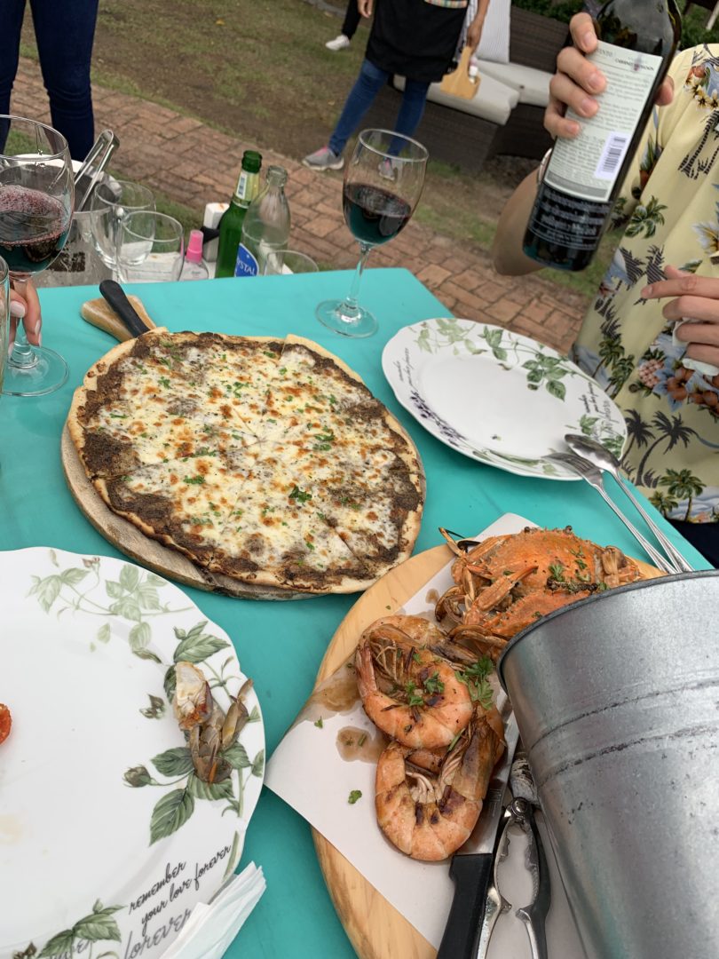 飲み物を持ち込めるレストランだったのでみんなでワインで乾杯。